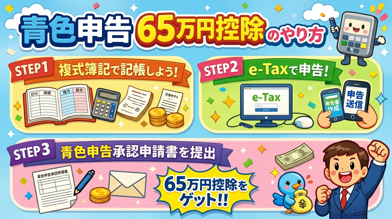 青色申告65万円控除のやり方を初心者向けにわかりやすく解説します。