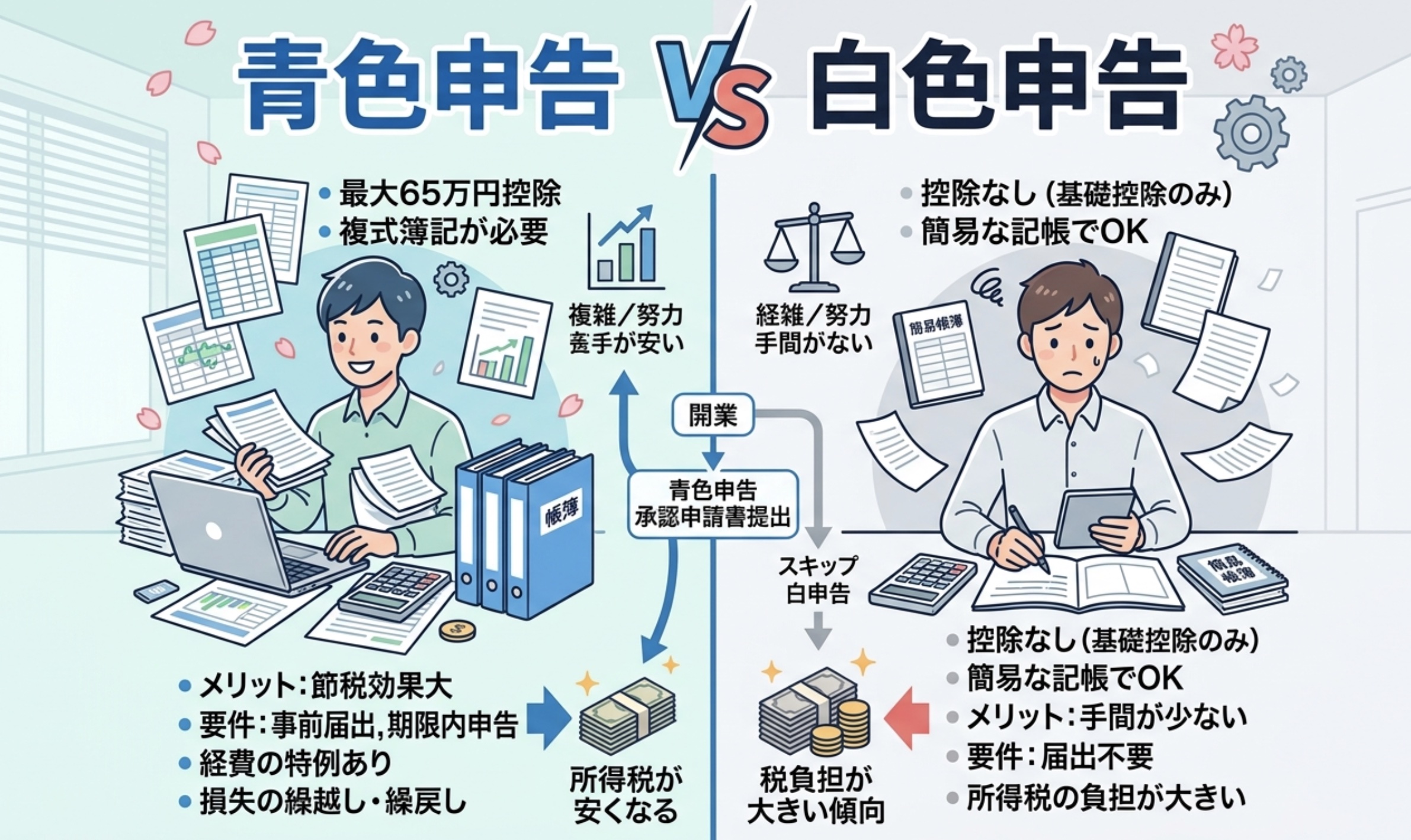 青色申告と白色申告の違い・メリット・選び方をわかりやすく解説します。