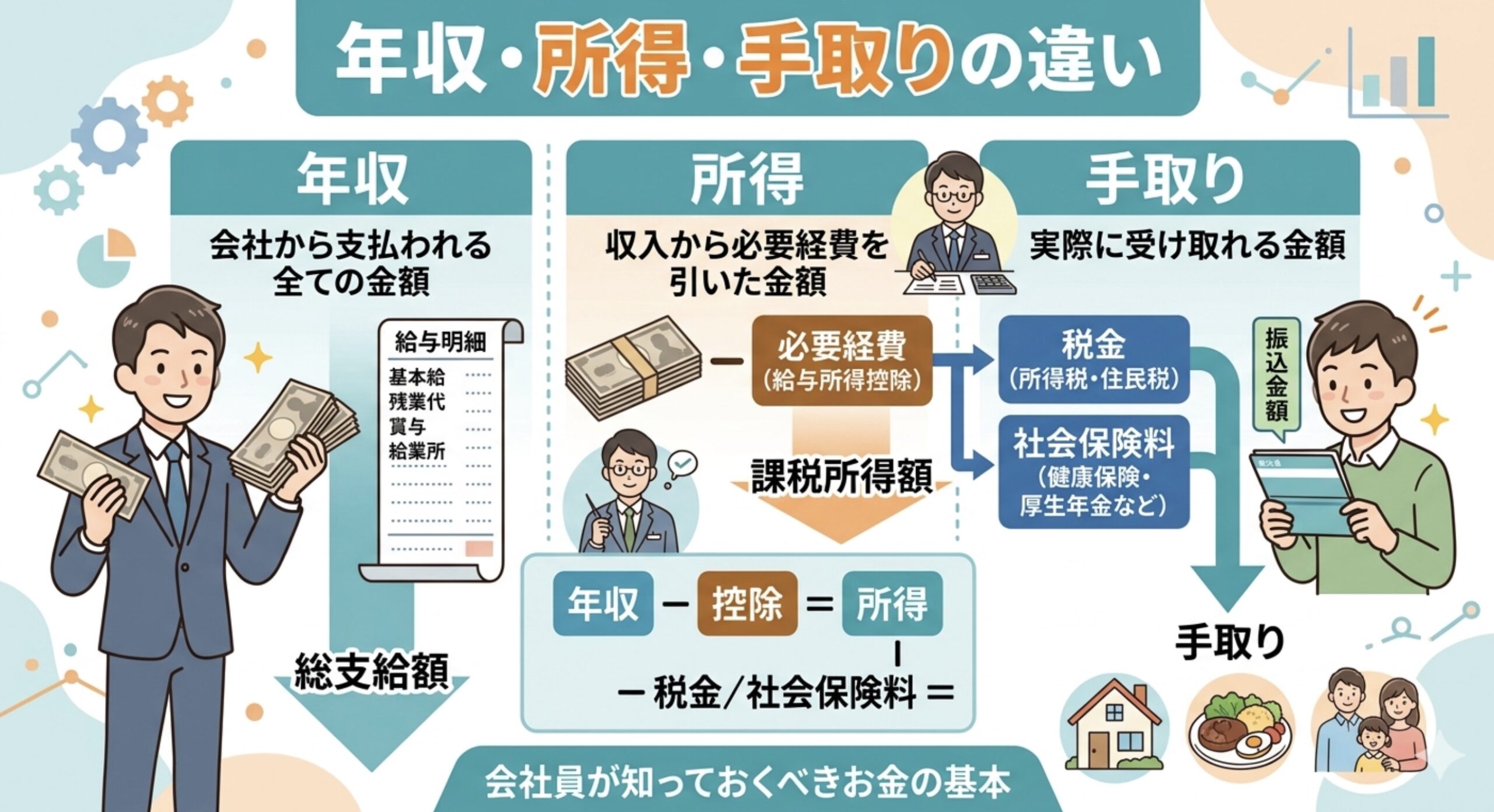 「年収・所得・手取りの違い」